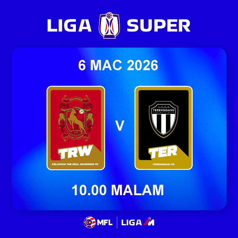 Perlawanan antara Kelantan The Real Warriors FC menentang TERENGGANU FC akan berlangsung seperti ketetapan berikut: