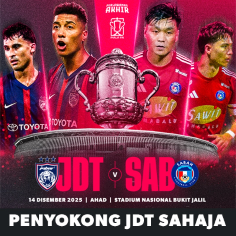 Detik kemuncak bola sepak Malaysia kembali! Juara bertahan Johor Darul Ta'zim (JDT) turun sekali lagi ke pentas final untuk mempertahankan kejuaraan, selepas membelasah Selangor FC 6-1 pada edisi 2024-2025.